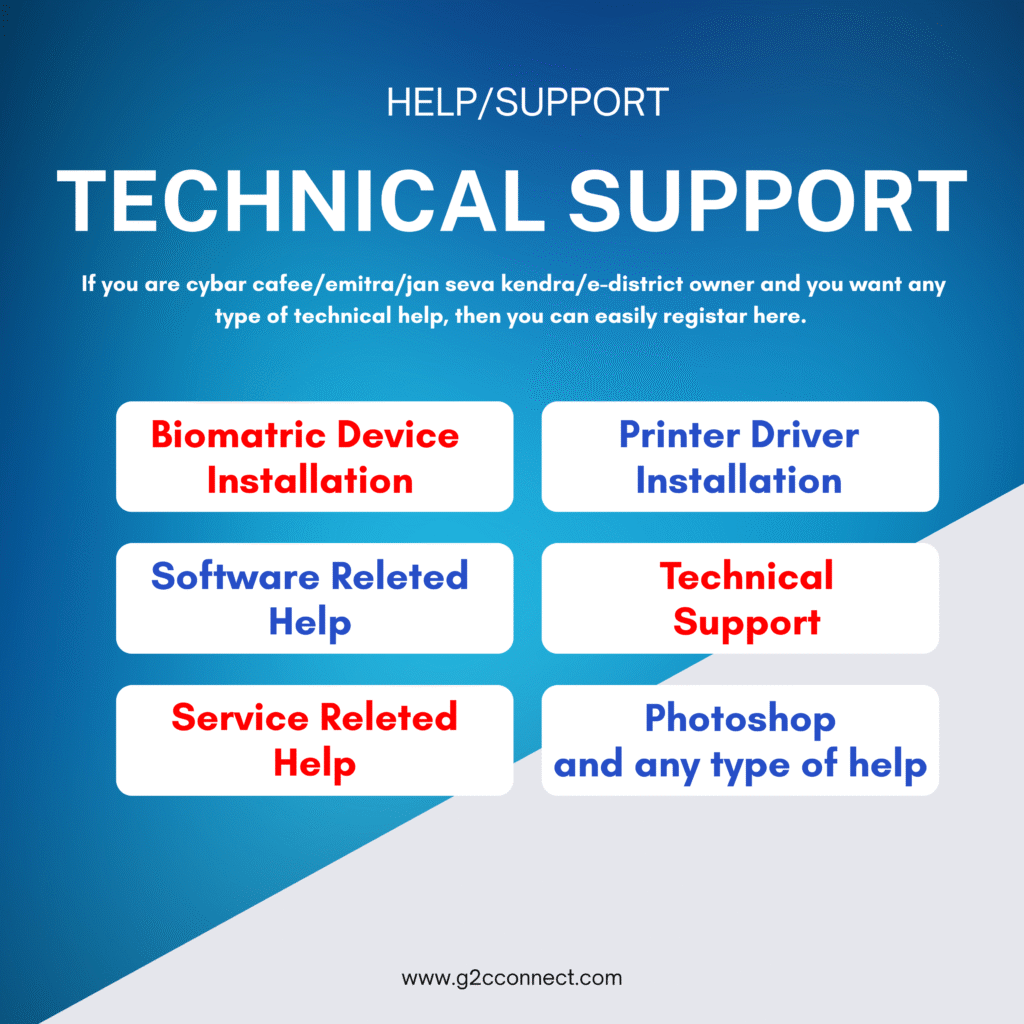 यहाँ से आप अपने ई मित्र / जन सेवा केंद्र पर आ रही समस्याओ के लिए टेकनीकल सपोर्ट ले सकते हो , जिसमे आपको एनी डेस्क की मदद से हमारे टेक एक्सपर्ट मदद करेंगे और आ रही समस्या का समाधान करेंगे |